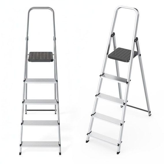 Drabina aluminiowa jednostronna 5 stopni składana z podestem 150 kg ModernHome