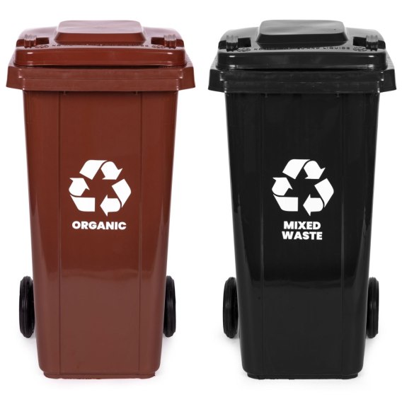 Zestaw 2 koszy na śmieci pojemniki 2x120L czarny brązowy odpady zmieszane BIO gumowe koła